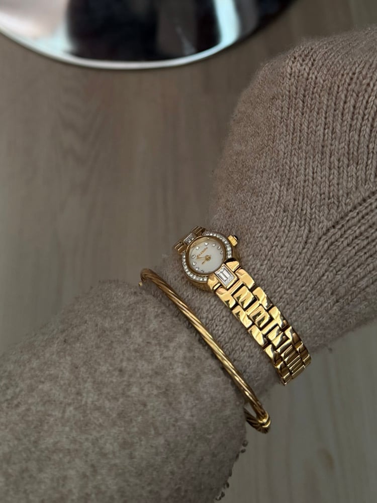 Beautiful Gold Tone Elgin Genuine Austrian Crystal Accent mother of pearl dial.🤍⚜️