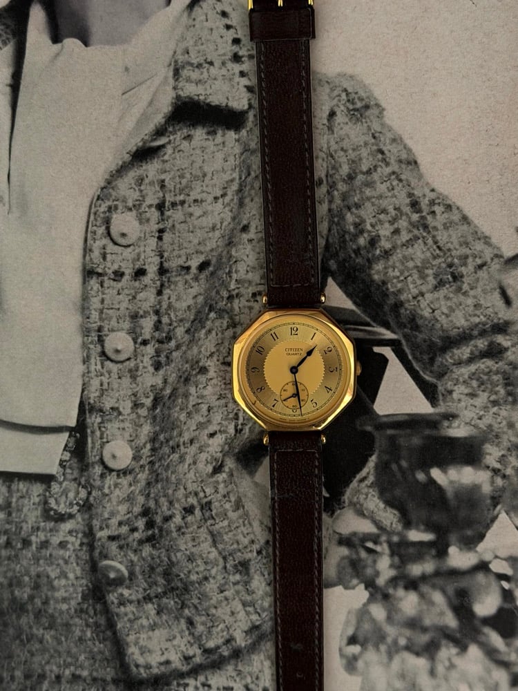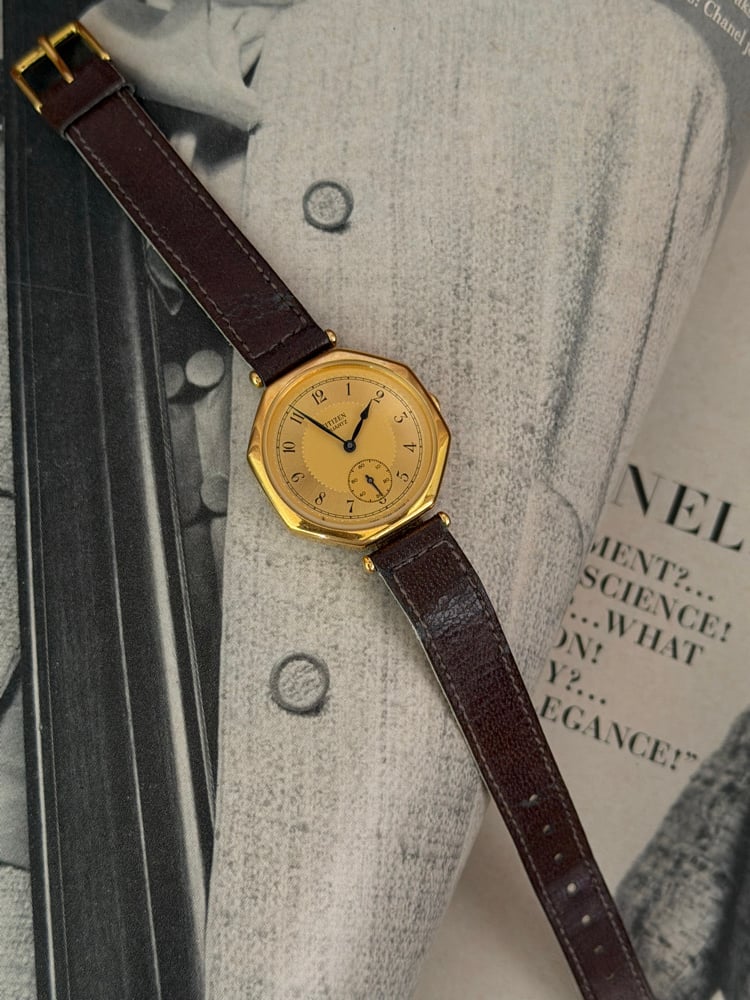 EXTREMELY RARE 1980-90s Citzien Gold Dial Leather Watch