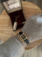 RARE and classic minimalist timeless black genuine leather Citizen ,featuring daity tank style dial with 18k gold and black dial 🤍⚜️